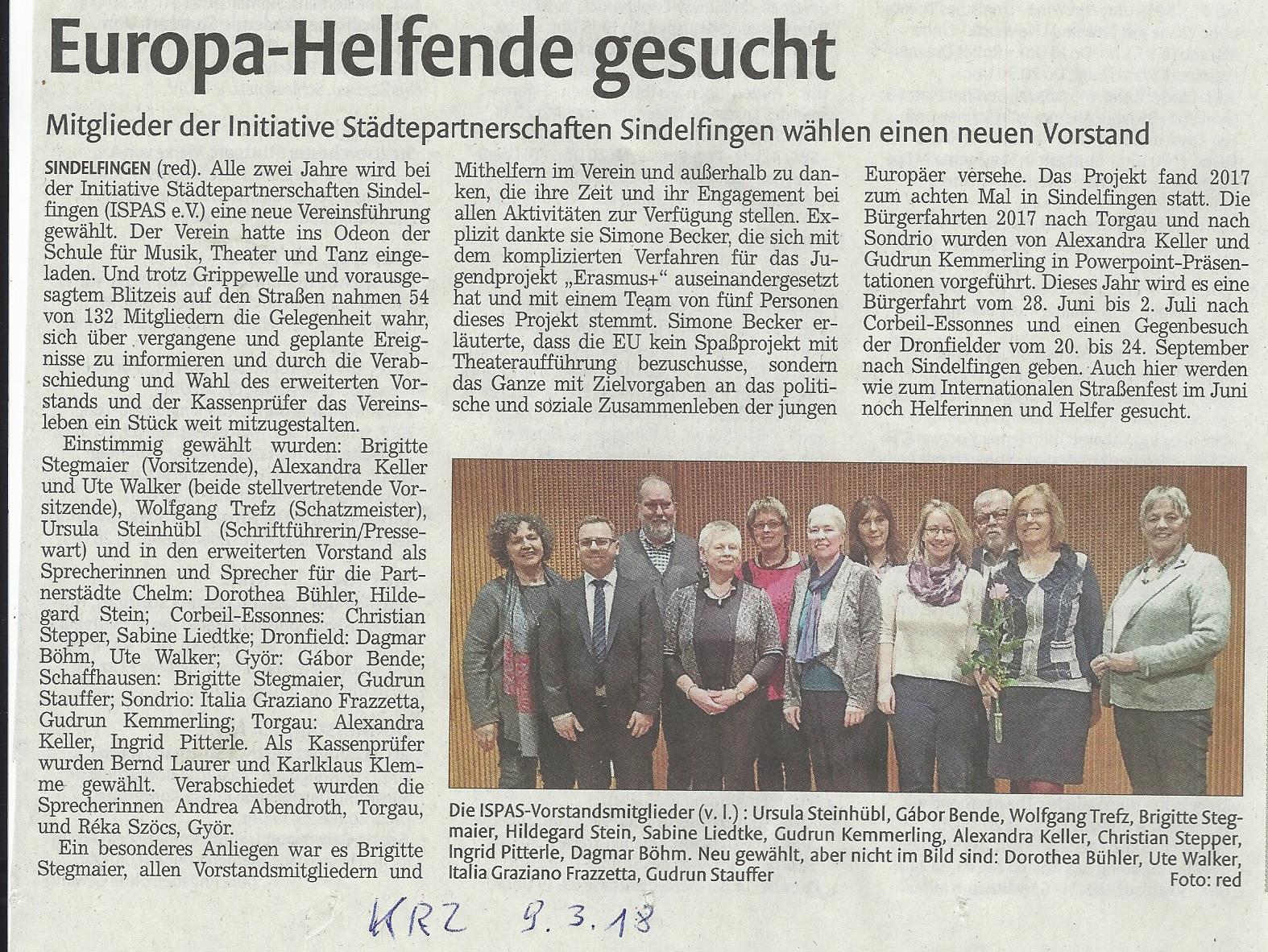 Europa-Helfende gesucht – Artikel zur 22. Jahreshauptversammlung in der KRZ BB Ursula Steinhübl 30. März 201817. Juli 2018