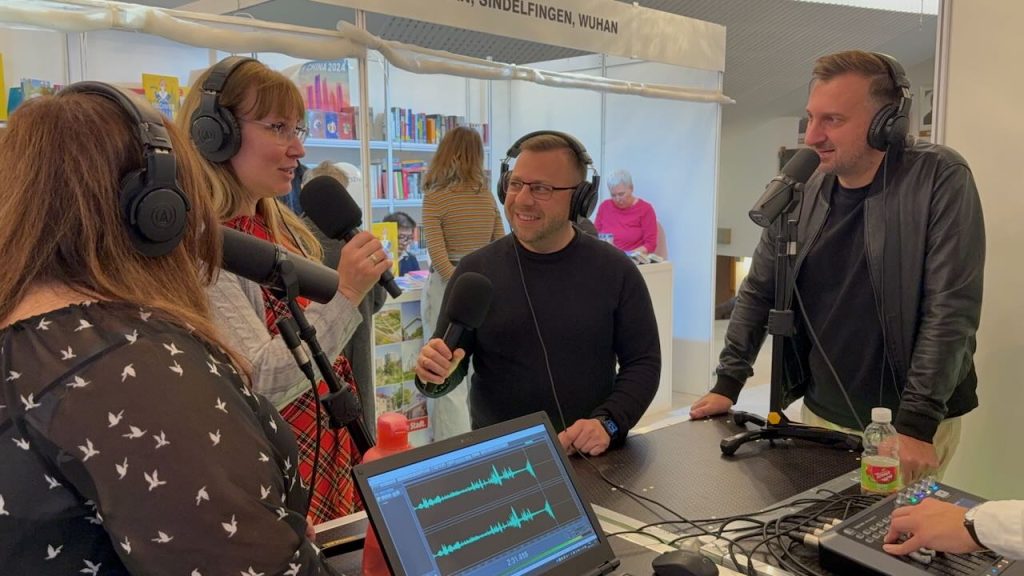 Ich hatte sogar die Gelegenheit, im Radio Győr ein Interview zusammen mit Orsolya Gyarmathy zu geben. Orsi ist Referentin für internationale Beziehungen der Stadt Győr. In unserem Gespräch haben wir unsere Städte, Győr und Sindelfingen, vertreten. Der Radiostand war direkt gegenüber dem Stand der Partnerstädte aufgebaut, weshalb es nahelag, über die Partnerstädte zu sprechen. Orsi erwähnte, dass es eine Tradition sei, die Partnerstädte jedes Jahr zum Buchsalon einzuladen. Die Städte präsentieren touristische Angebote und verkaufen auch Bücher auf Ungarisch.